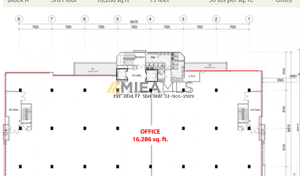 BLOCK A (3rd floor): 16,286 sqft (office)