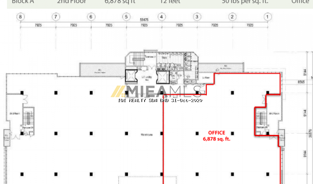 BLOCK A (2nd floor): 6,878 sqft (office)