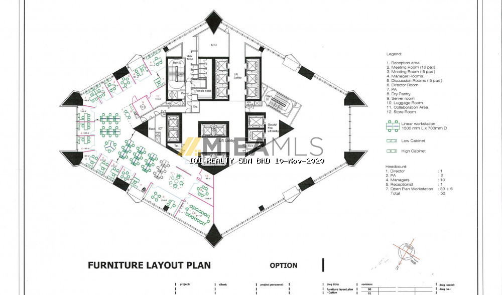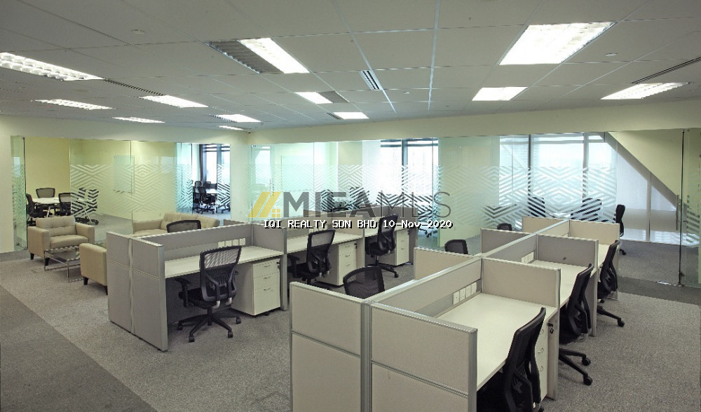 Level 32-01 (6,491 Sq.ft.) – High Zone (with raised floor system) Fully furnished unit, asking rental RM10.50 psf (Neg) 15 Manager rooms 1 Board Meeting room – 14 Pax 1 Discussion room – 6 pax 1 waiting area with 7 sofa seats Open space with 33 Workstations, 3 discussion tables (3-4 pax each) 1 server rooms, 2 Internal room/store/file room.