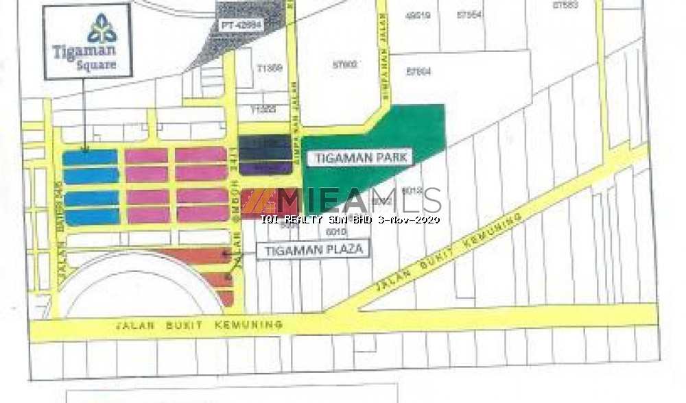 Tigaman Park, Kota Kemuning FREEHOLDLAND FOR SALE TOTAL AREA: 2.4 ACRES Contact William: 014-3131931 Features: - A freehold commercial land situated in the residential, commercial and industrial centre of Bukit Kemuning-a fast growing area. Excellent accessibility - Federal Highway, Kesas, LKSA and the West Coast Highway - Surrounded by mature township: Kota Kemuning and Kemuning Utama, Tmn Sentosa etc - Surrounded by 6 hypermarkets: Aeon Big, Econsave, Giant, NSK, Mydin, Tesco etc.