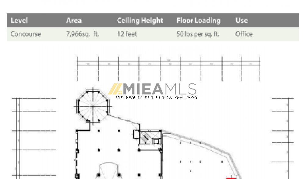 Level Mezzanine: 4525 sqft (showroom / office) Concourse: 7,966 sqft (office)