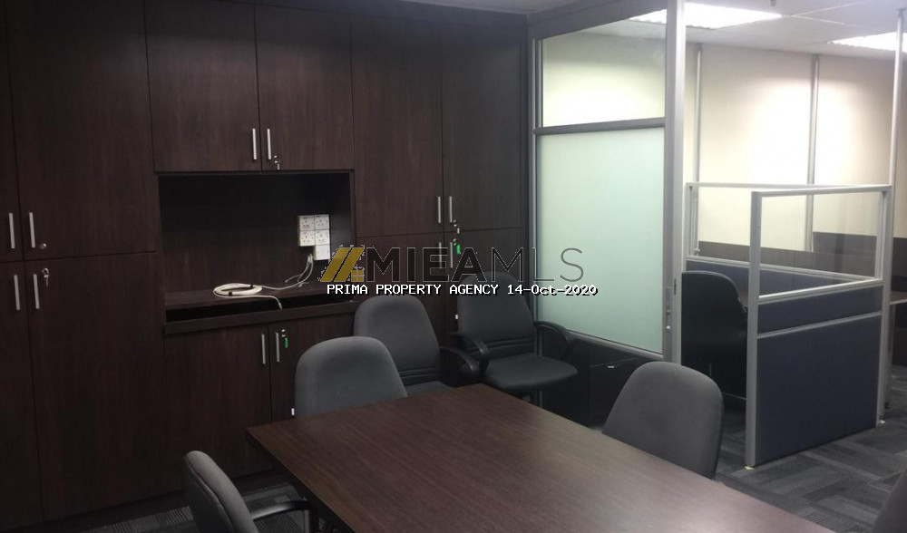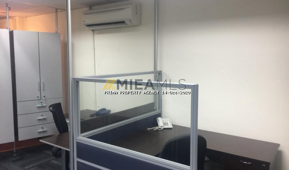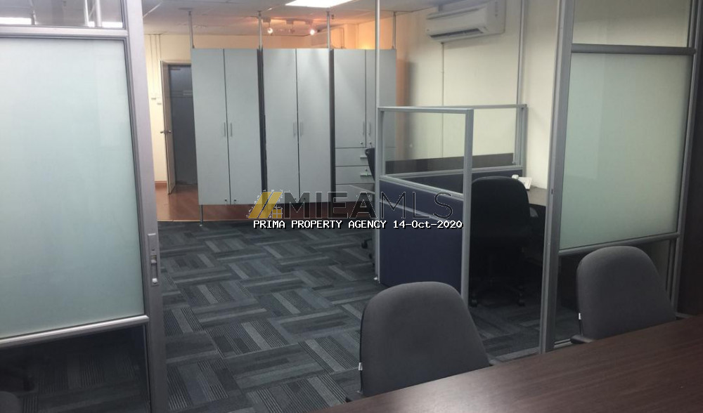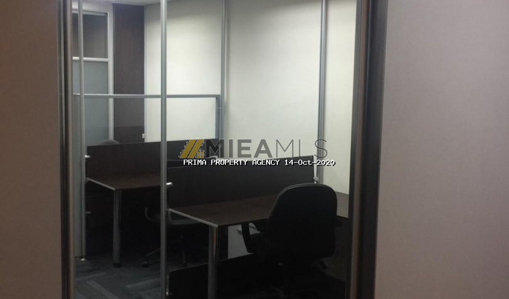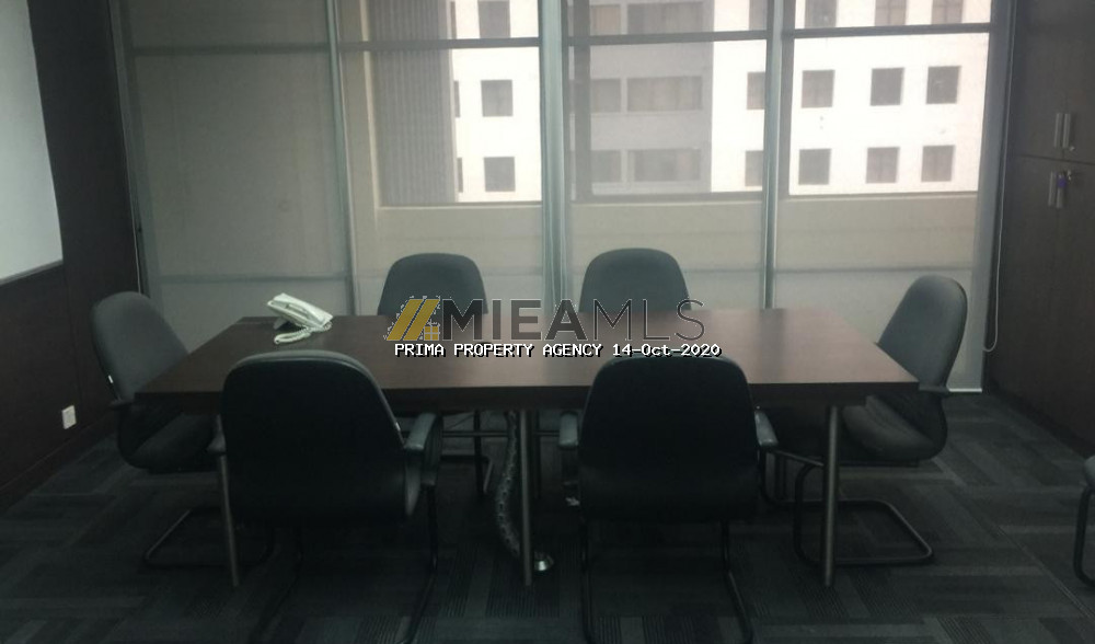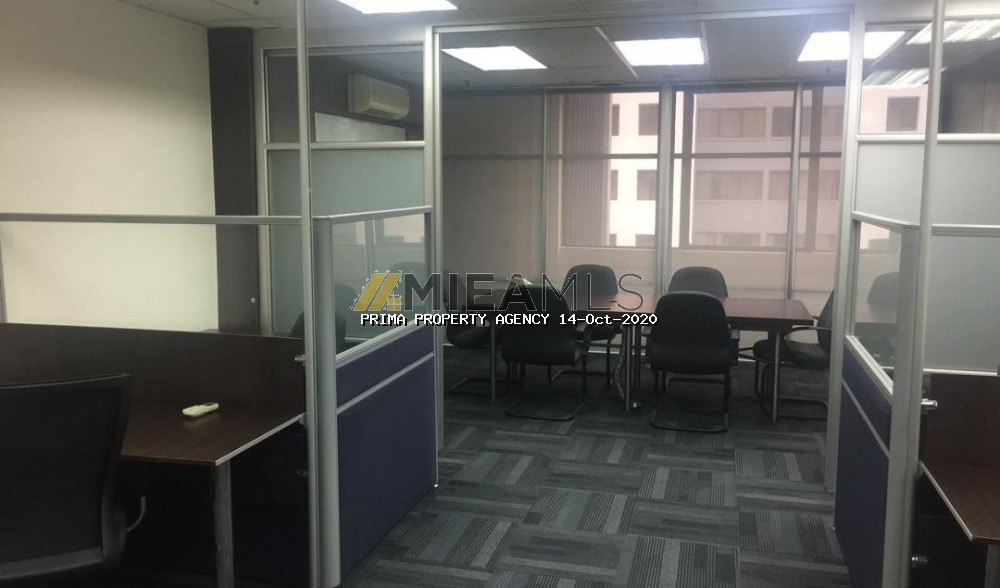 This unit is a modern office fitted with a big glass partitioned meeting room and an Open office concept area with workstations. Its furnished with air cond units, lights, meeting table, workstations & chairs. Lots of storage space with built-ins cabinets lining the 2 walls. Move in condition.
