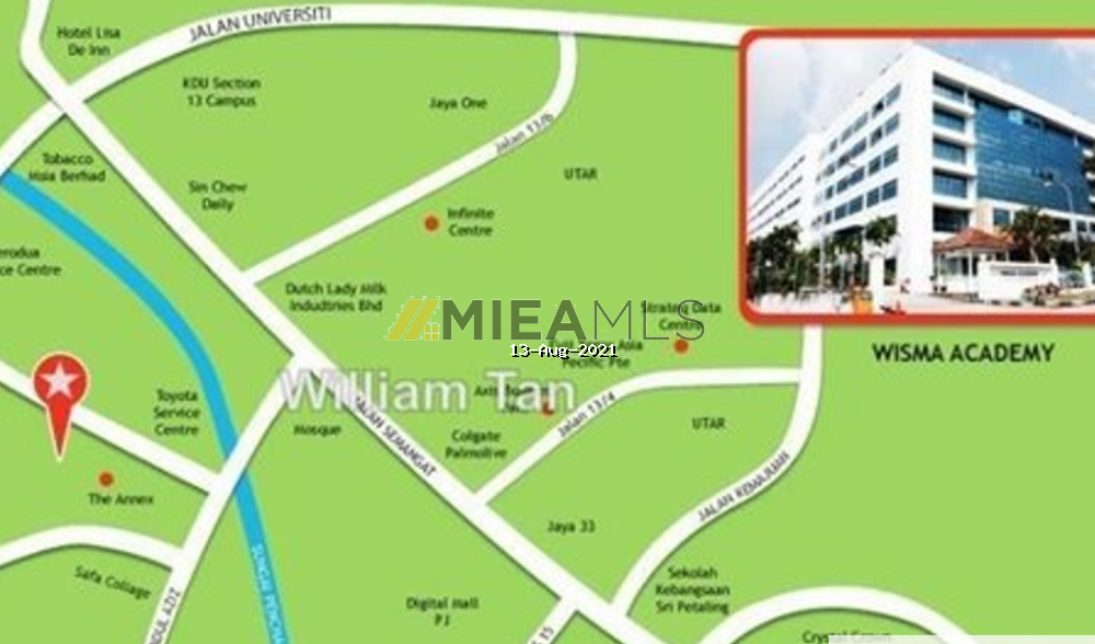 AVAILABLE FOR RENT Ground floor : RM4.50 psf (fitted office), RM3.30 (non-fitted office) Upper floor offices fitted: RM3.80 psf Upper floor offices Non fitted: RM3.30 psf Ground floor: 11,046 sqft (fitted office), 2930 sqft, 3500 sqft, 5060 sqft, 6436 sqft, 2396 sqft ) 1st floor: 5,674 sqft, 7,835 sqft (office) 2nd floor: 3,788 sqft (fitted office) 3rd floor: 2,400 sqft, 3,058 sqft, 3,548 sqft, 9,031 sqft 5th floor : 4,686 sqft, 5,828sqft, 2335sqft (office) No. 4A, Jalan 19/1, 46300 Petaling Jaya, Selangor Wisma Academy is a 6 storeys with a 2-level basement car park. Some of the notable office buildings in the vicinity include Dataprep (Malaysia) Sdn Bhd, Ban Leong Technologies Sdn Bhd, Tenaga Nasional Berhad and Ingram Micro (Malaysia) Sdn Bhd. ACCESSIBILITY CAR: Excellent accessibility from Kuala Lumpur City Centre and from Subang Jaya and Shah Alam via the Federal Highway, or alternatively Lebuhraya Damansara-Puchong and Lebuhraya SPRINT. BUS:Walking distance to Putra LRT shuttle bus service station. TRAIN:5 minutes drive to Taman Paramount Putra LRT Station. F&B FACILITIES: 1 min walk to food stalls along Jalan 19/1. Walking distance to Eat Café (next door), Powerful Food Court and 3 Two Square (which accommodates a number of F&B outlets). Additionally, ample F&B outlets and food stalls in the vicinity and neighborhood of SS2, Seapark, Section 14 and Section 17.