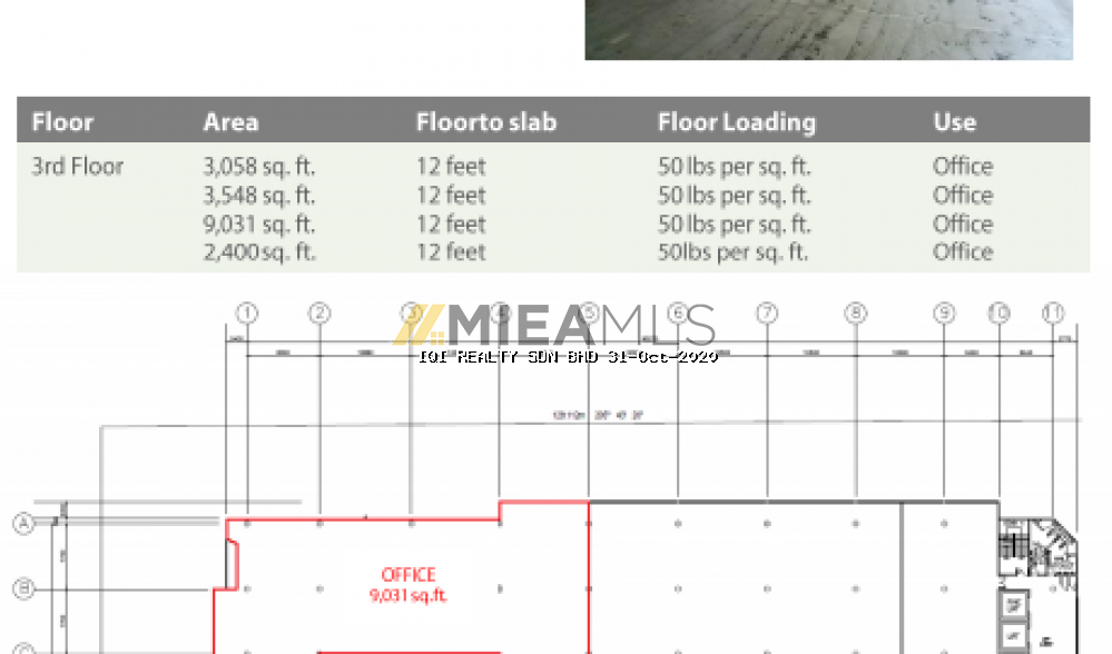 3rd floor: 1,270 sqft (warehouse), 3,058 sqft, 3,548 sqft, 9,031 sqft