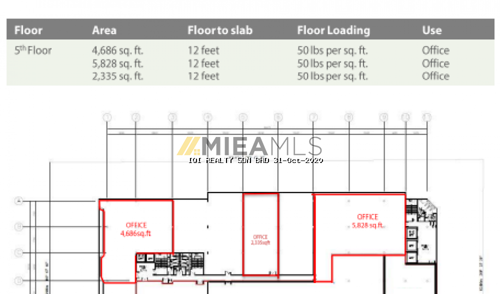 5th floor : 4,686 sqft, 5,828sqft, 2335sqft (office)